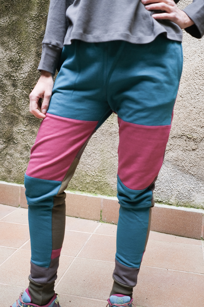 Pantalons estil xandall fets amb Pelfa hivern o estiu amb retalls de teixits sobrants d’altres peces.